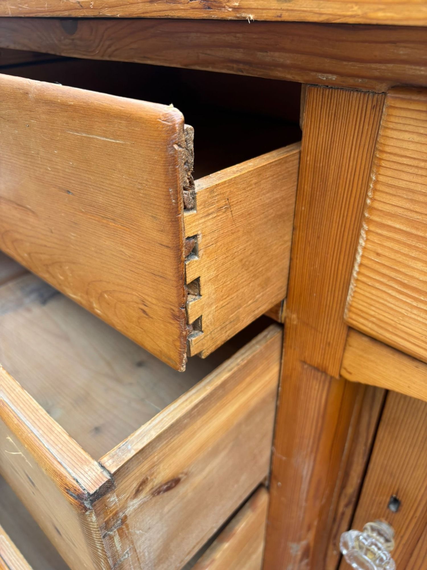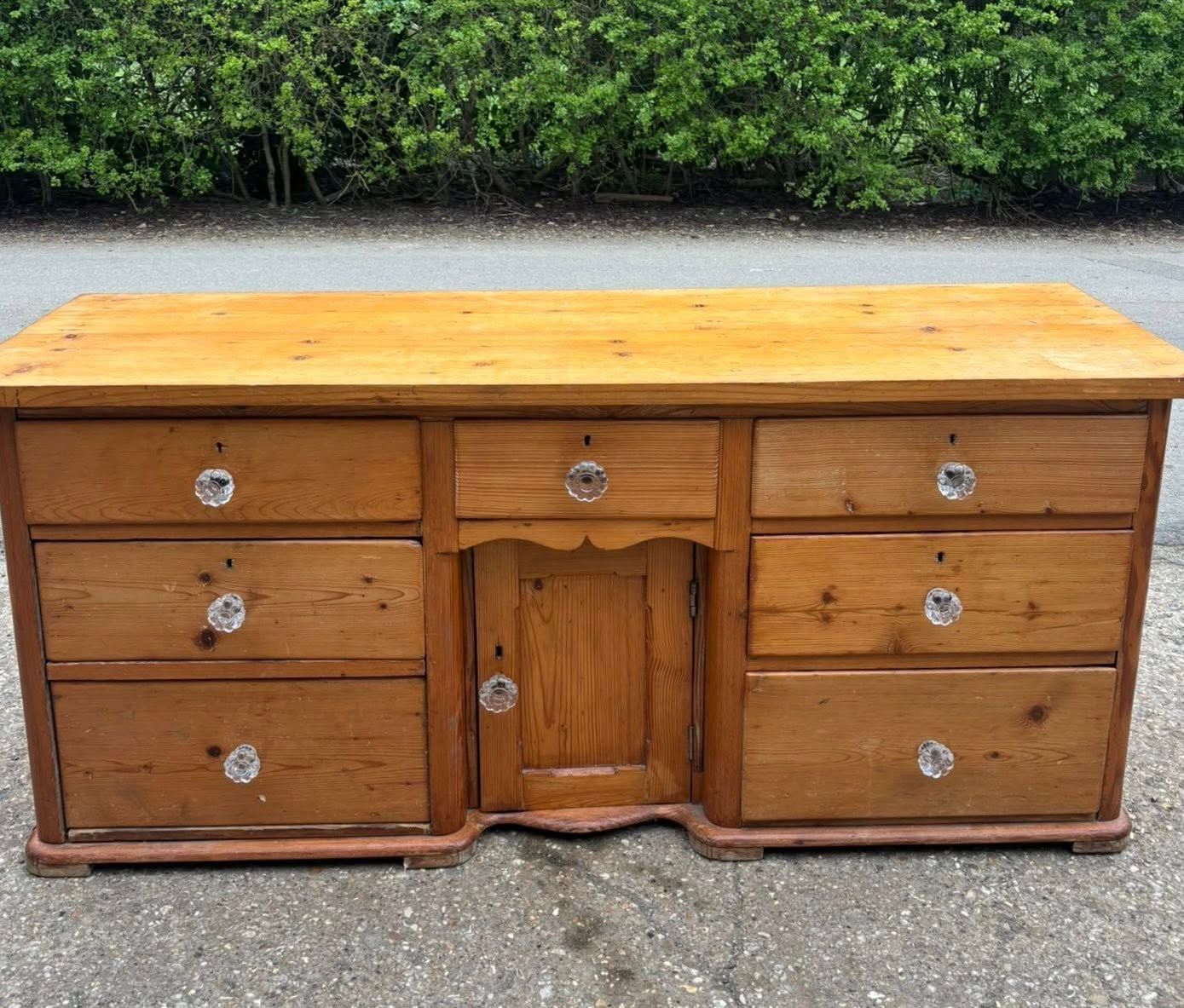 An antique solid pine sideboard with a lovely natural patina from age and use.
