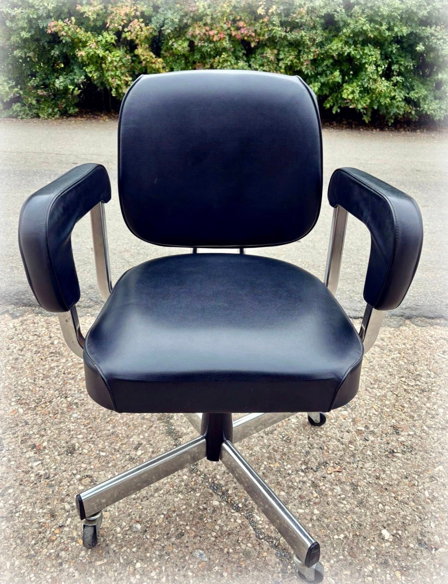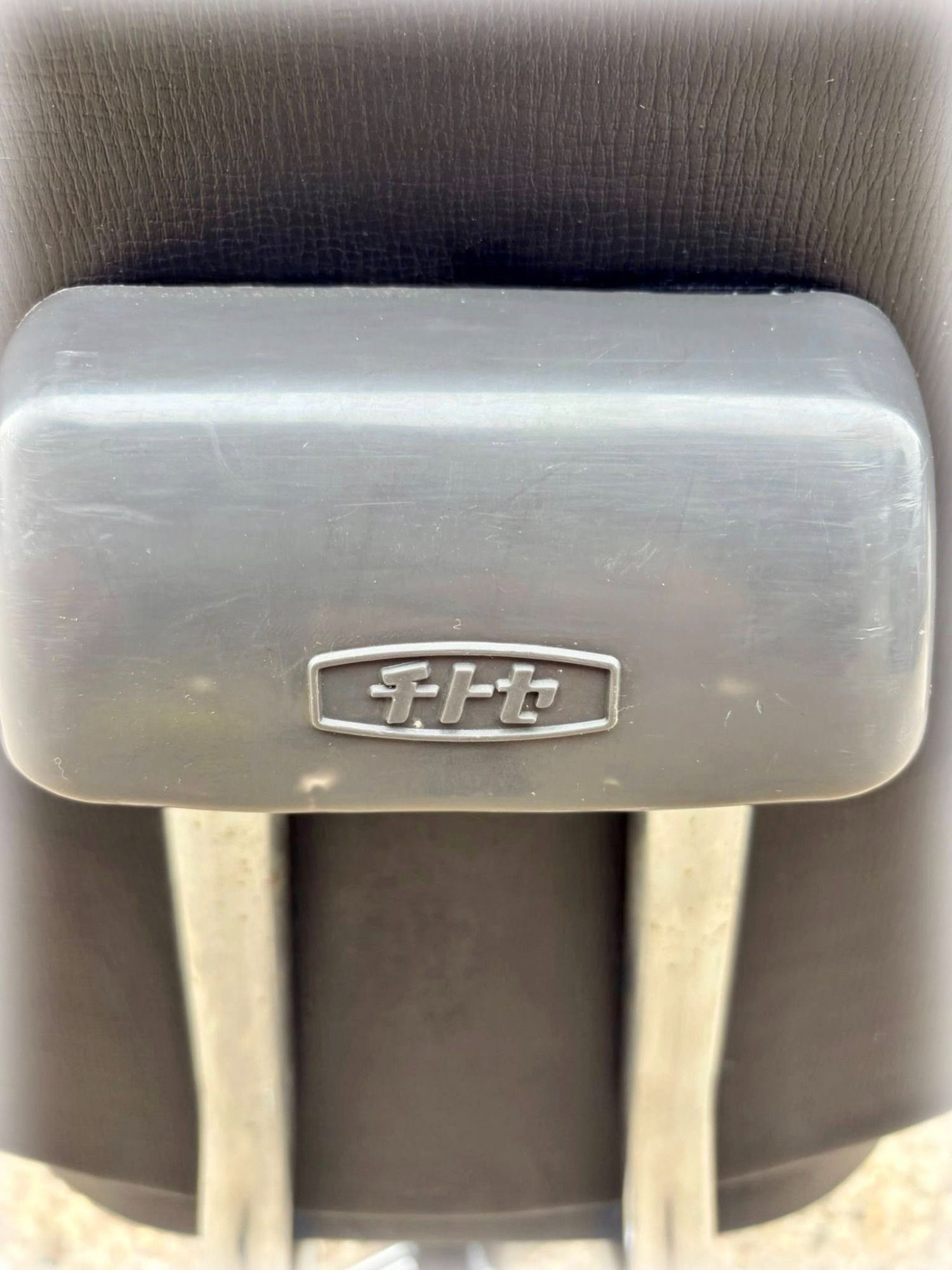 This vintage office chair, crafted by Chitose, is in fair condition with some wear on the upholstery.