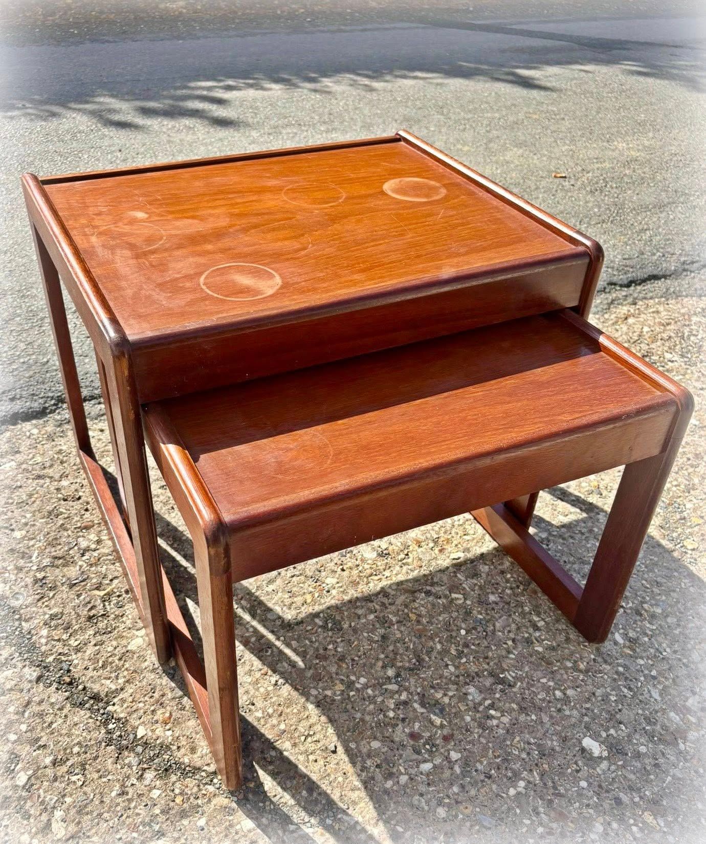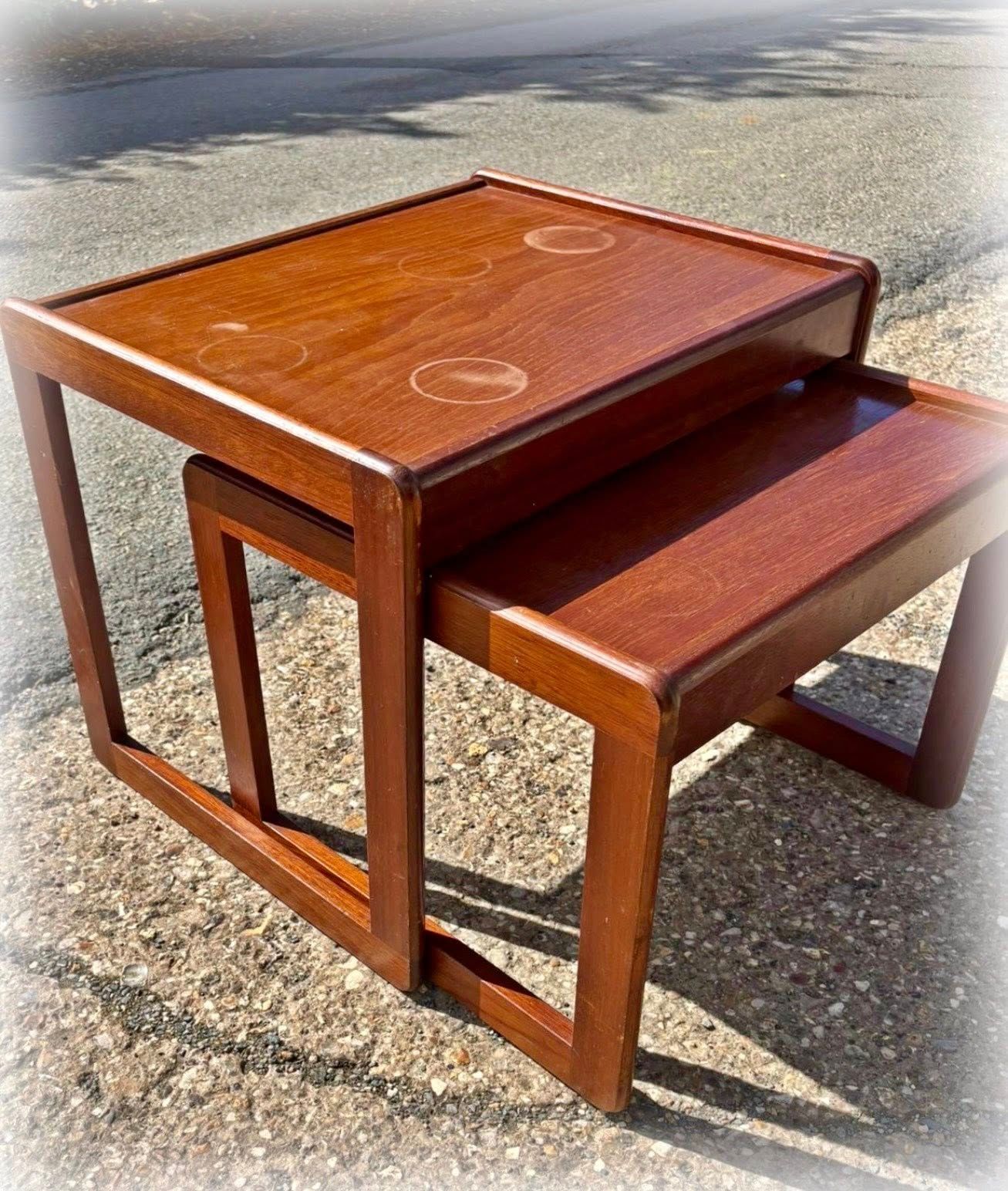 A stylish mid-century teak nest of tables featuring a timeless cube design that’s right on trend.