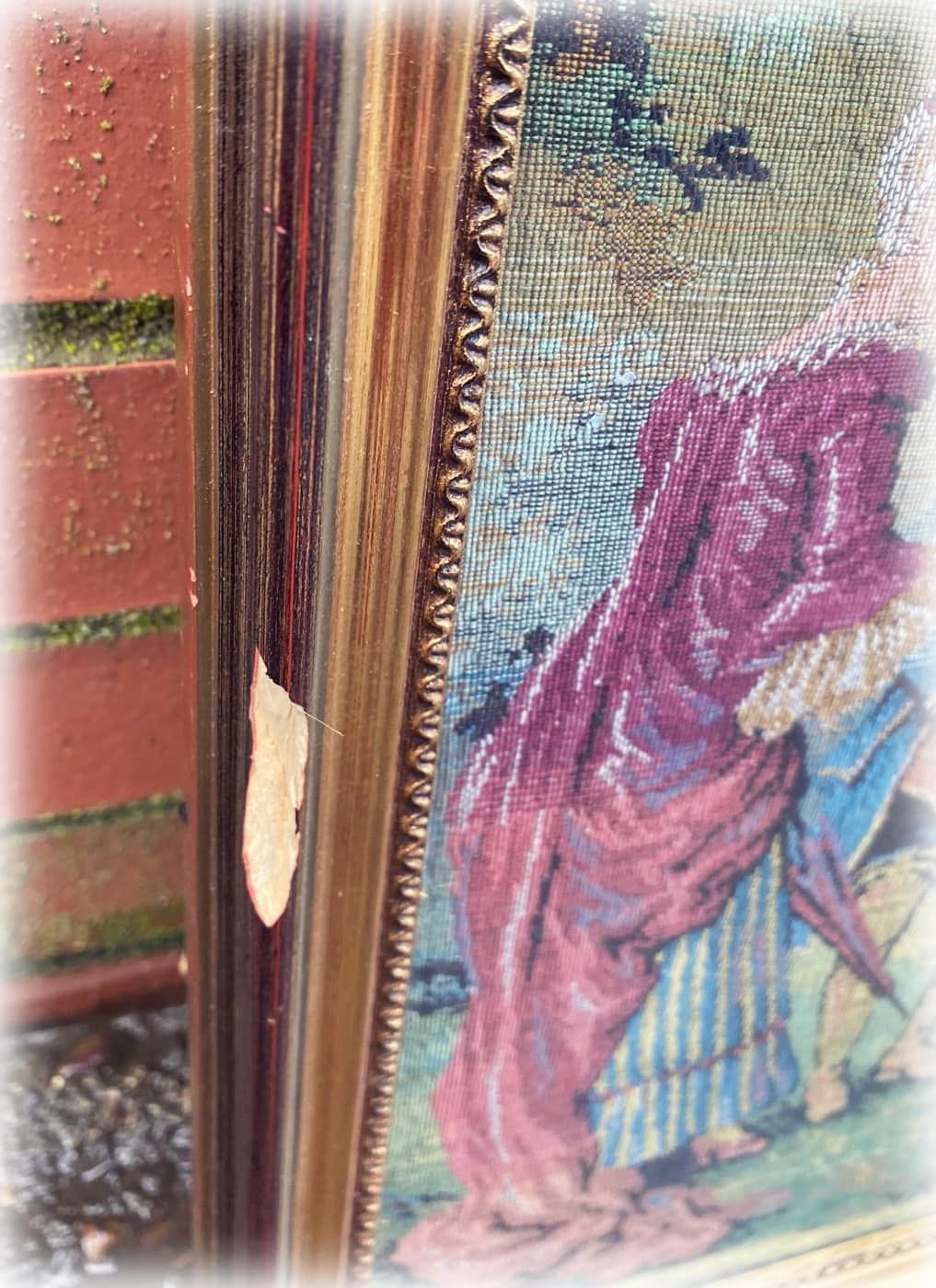 The tapestry is well-preserved, while the frame’s vintage wear only adds to its authentic charm.